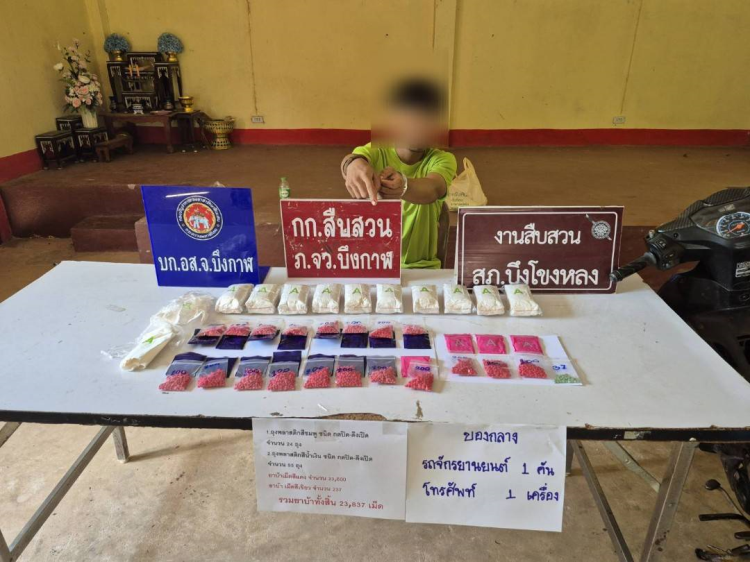 ร้อย.อส.จ.บก.1 บก.อส.จ.บึงกาฬ ร่วมจับกุมผู้ค้ายาเสพติด 1 ราย พร้อมของกลางยาบ้า 23,837 เม็ด