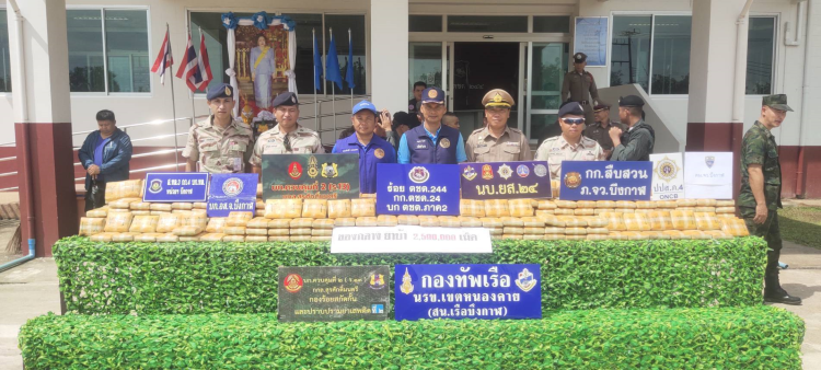 ร้อย.อส.จ.บก.1 บก.อส.จ.บึงกาฬ ร่วมบูรณาการตรวจยึดยาบ้า จำนวน 7 กระสอบ รวมทั้งหมดประมาณ 2,590,000 เม็ด