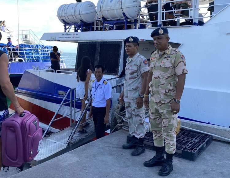 ร้อย.อส.อ.เกาะพะงัน 16 บก.อส.จ.สุราษฎร์ธานี ร่วมบูรณาการปฏิบัติหน้าที่เวรสายตรวจบริเวณท่าเรือและสถานที่สำคัญ และดูแลนักท่องเที่ยวในความปลอดภัยในชีวิตและทรัพย์สิน ที่เดินทางมาในพื้นที่อำเภอเกาะพะงัน