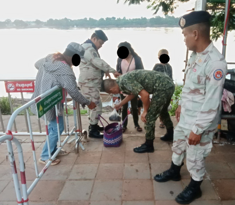 ร้อย.อส.อ.นาตาล 23 บก.อส.จ.อุบลราชธานี ตรวจค้นยาเสพติดและสิ่งผิดกฎหมายจากประชาชน สปป.ลาว ที่ข้ามมาแลกเปลี่ยนซื้อ-ขายสินค้า ที่ตลาดนัดจุดผ่านแดนถาวรบ้านปากแซง
