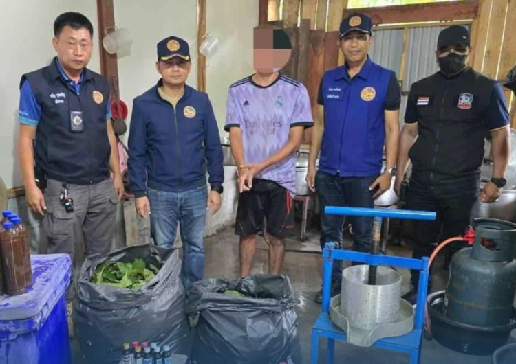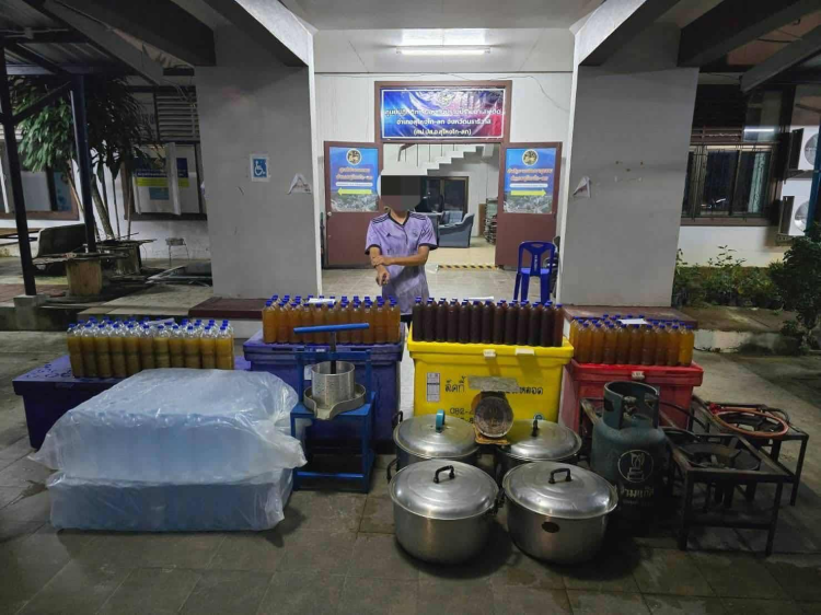 (ชป.สิงห์สลาตัน) รวบพ่อค้าน้ำต้มกระท่อม ยึดของกลาง 178 ขวด