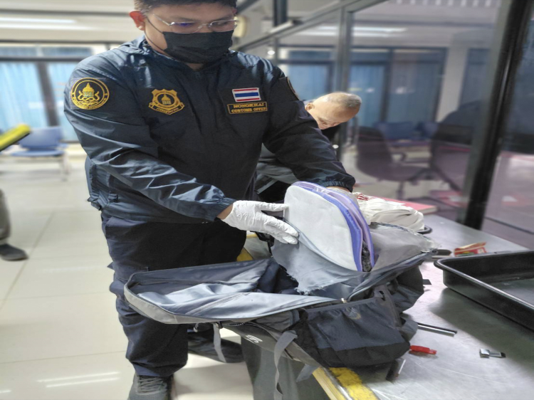 สืบเนื่องจาก เวลาประมาณ 06.30 น. ของวันที่ 19 กันยายน 2568 ขณะที่เจ้าหน้าที่ศุลกากรประจำด่านพรมแดนสะพานมิตรภาพไทย-ลาว แห่งที่ 1 จังหวัดหนองคาย ได้ปฏิบัติหน้าที่ตามปกติ ผู้ต้องหาได้เดินทางเข้ามาในราชอาณาจักร โดยใช้รถประจำทางผ่านด่านพรมแดนหนองคาย พร้อมสะพายกระเป๋าเป้จำนวน 1 ใบ เมื่อผู้ต้องหาเดินตามช่องทางผู้โดยสารขาเข้ามายังจุดตรวจสัมภาระของศุลกากร เจ้าหน้าที่ได้เรียกตรวจกระเป๋าสัมภาระผ่านเครื่อง X-Ray จากการตรวจสอบภาพเอกซเรย์พบว่ากระเป๋ามีความผิดปกติ จึงได้ขอเปิดตรวจภายในกระเป๋า พบเป็นของใช้ส่วนตัว และเมื่อตรวจสอบบริเวณผนังกระเป๋าด้านหลังพบหนาผิดปกติ เมื่อแกะดูพบมีห่อสีดำซุกซ่อนอยู่ จำนวน 1 ห่อ เปิดดูภายในห่อสีดำพบผงสีขาวบรรจุอยู่ภายใน น้ำหนักรวมสิ่งห่อหุ้มประมาณ 1.5 กก. จึงได้นำผลสีขาวมาทดสอบด้วยน้ำยา ONCB015 ปรากฏว่ามีการทำปฏิกิริยากับน้ำยาเคมี จากใสไม่มีสีเปลี่ยนเป็นสีม่วง จึงเชื่อได้ว่าเป็นยาเสพติดให้โทษประเภท 1 (เฮโรอีน)
