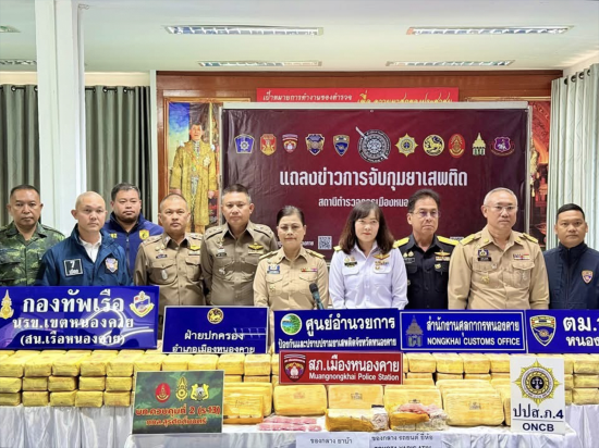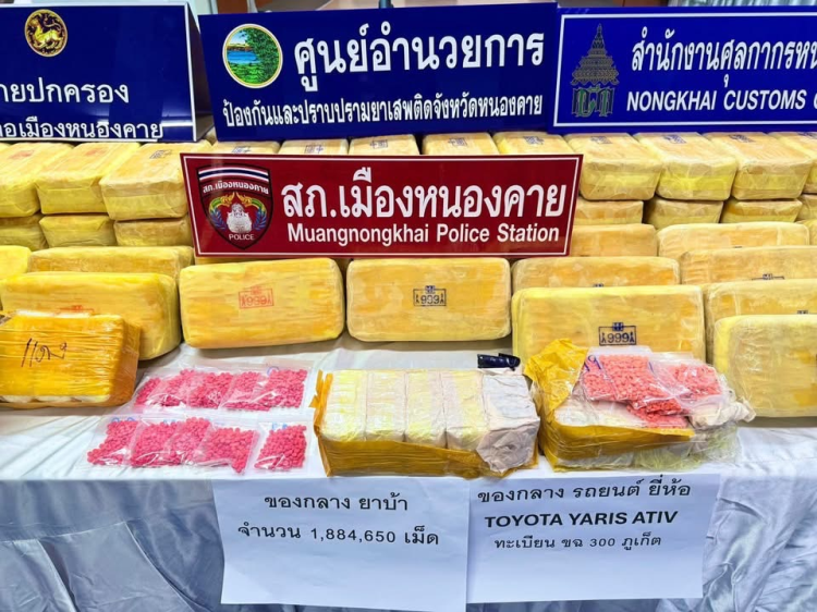 รอง ผบ.อส.จ.นค. บก.อส.จ.หนองคาย ร่วมแถลงข่าวปฏิบัติการกวาดล้างยาเสพติด ”No Drugs No Dealers“ สู่ Zero Drugs NongKhai” จับกุมผู้ต้องหาพร้อมของกลางยาบ้า 1,884,650 เม็ด