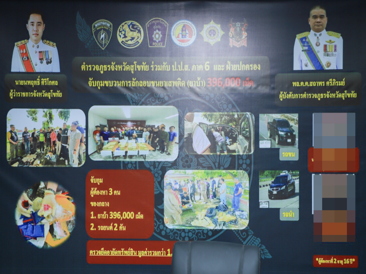 โดยเมื่อวันที่ 16 กันยายน 2568 เวลาประมาณ 08.30 น. เจ้าหน้าที่ตำรวจ ตำรวจภูธรจังหวัดสุโขทัย ได้รับแจ้งจาก สำนักงานป้องกันและปราบปรามยาเสพติด ภาค 6 ประสานให้ช่วยติดตามรถต้องสงสัยเกี่ยวข้องกับยาเสพติด จำนวน 2 คัน สืบเนื่องจากกองบังคับการสืบสวนสอบสวน ตำรวจภูธร ภาค 5 ตรวจพบการเดินทางรถยนต์กระบะแคป ยี่ห้อโตโยต้า รุ่น รีโว่ สีดำ ส่วนคันที่ 2 เป็นรถยนต์เก๋งยี่ห้อฮอนด้า รุ่นแอคคอร์ด สีดำ ซึ่งต้องสงสัยว่ามีพฤติการณ์ลักลอบขนส่งยาบ้ามาจากจังหวัดเชียงราย จึงตั้งด่านตรวจ จุดตรวจ จุดสกัด นำกำลังออกตรวจสอบพื้นที่ รับผิดชอบตามที่ได้รับแจ้ง
