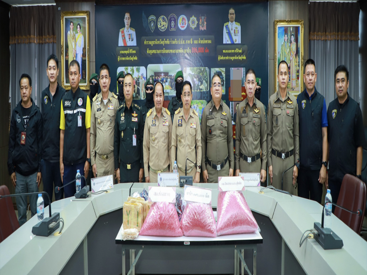 ผบ.อส.จ.สท. บก.อส.จ.สุโขทัย เป็นประธานการร่วมแถลงข่าวผลการปราบปรามยาเสพติด กรณีจับกุมผู้ต้องหา 3 ราย พร้อมของกลางยาบ้า 396,000 เม็ด