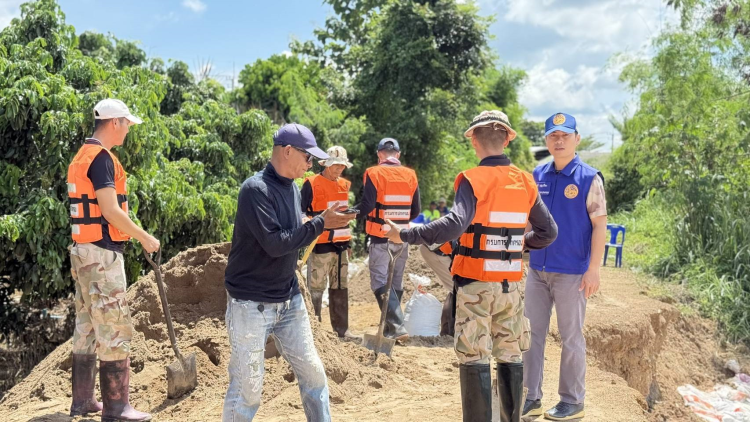 ร้อย อส.อ.เมือง ลพ.1 และ ร้อย บก.บร. บก.อส.จ.ลำพูน ร่วมบูรณาการซ่อมแซมตลิ่งเลียบน้ำทา เนื่องจากน้ำเซาะตลิ่ง บริเวณบ้านป่าตองหลวง