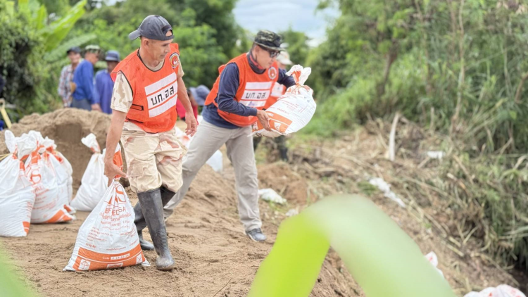 ร้อย.อส.อ.เมือง ลพ.1 และ ร้อย.บก.บร.บก.อส.ลำพูน ร่วมบูรณาการซ่อมแซมตลิ่งเลียบลำน้ำทา เนื่องจากน้ำเซาะตลิ่ง บริเวณบ้านป่าตองหลวง