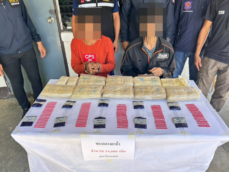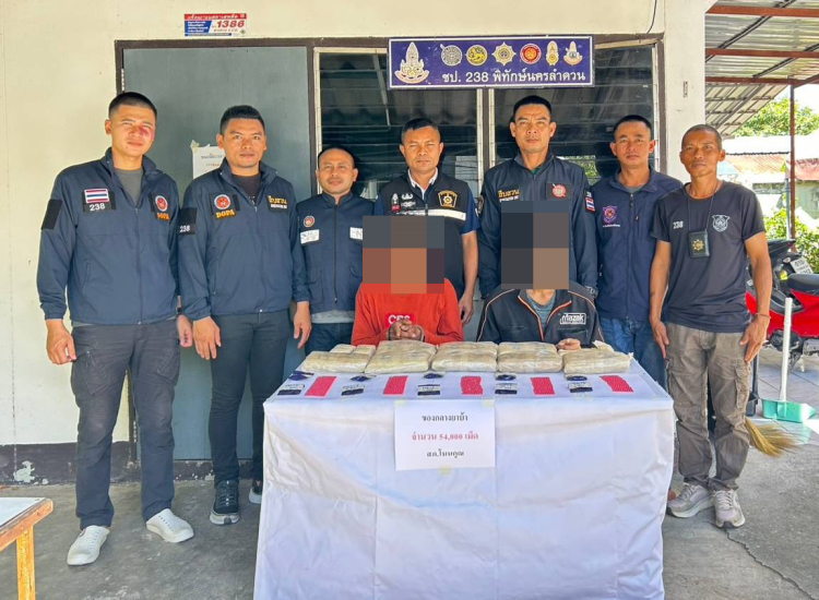 ร้อย.อส.จ.ศก.2 บก.อส.จ.ศรีสะเกษ จับกุมผู้ต้องหา 2 ราย พร้อมของกลางยาบ้า 54,000 เม็ด
