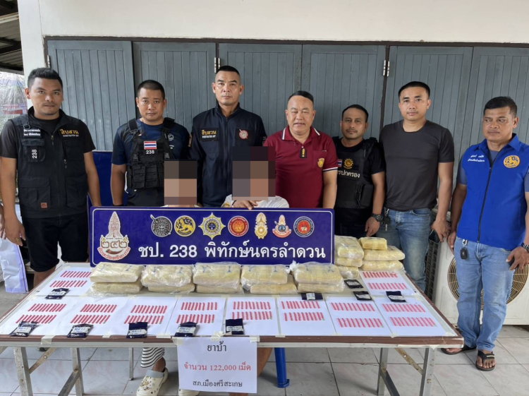 ร้อย.อส.จ.ศก.2 บก.อส.จ.ศรีสะเกษ ชุดปฏิบัติการ 238 พิทักษ์นครลำดวน จับกุมผู้ต้องหา 2 ราย พร้อมของกลางยาบ้า 122,000 เม็ด