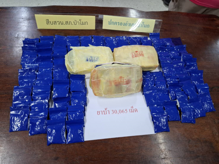 จากนั้นได้นำเจ้าหน้าที่ไปที่ชั้นบนของบ้าน พบว่ามียาบ้า 21 เม็ด อยู่ในลิ้นชักตู้เสื้อผ้านายเอ (นามสมมุติ) สมาชิก อส. ร้อย.อส.อ.ป่าโมก 3 จึงทำการตรวจค้นเพิ่มเติม พบถุงกระสอบปุ๋ยสีขาวเปิดดูภายในพบบรรจุยาบ้า 15 มัด ตรวจสอบภายหลังพบว่าของกลางยาบ้าทั้งหมด รวม 30,065 เม็ด นายฉัตรชัยฯ จึงรายงาน ผบ.ร้อย.อส.อ.ป่าโมก 3 และแจ้งผู้กำกับการสถานีตำรวจภูธรป่าโมก เพื่อขอกำลังเสริมจากเจ้าหน้าที่ตำรวจเพื่อทำการจับกุม และนำตัวไปตรวจหาสารเสพติดในปัสสาวะที่โรงพยาบาลป่าโมก พบว่ามีสารเสพติดยาบ้าในปัสสาวะ สอบถามนายเอ (นามสมมุติ) ยอมรับว่ายาเสพติดทั้งหมดเป็นของตนเอง โดยตนจะไปรับจากคนมาส่งเป็นเพื่อนกันตอนเป็นทหารเกณฑ์ ไม่ทราบชื่อสกุล จริง ที่ถนนสายเอเซีย แล้วนำมาไว้ที่บ้าน เพื่อรอส่งต่อให้เพื่อนๆ ในเฟสบุ๊ก ในราคา 5 เม็ด 200 หรือ 10 เม็ด 400 โดยจะจำหน่ายในพื้นที่ อ.ป่าโมกและใกล้เคียง