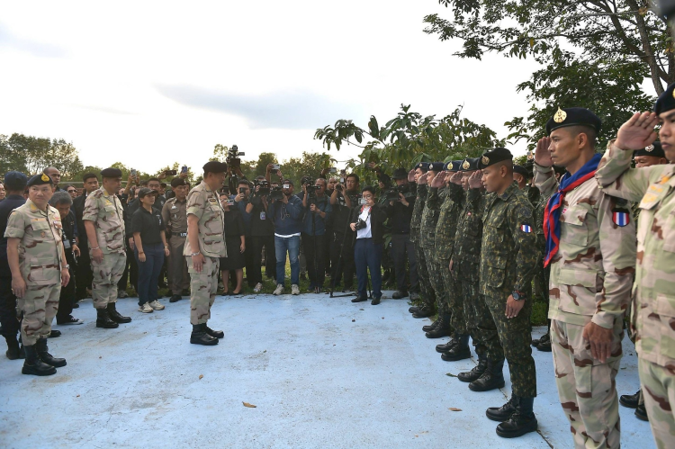 นายกฯ อนุทิน (ผบ.อส.) นำทีม ครม. และผู้บังคับบัญชาฝ่ายทหาร-มหาดไทย ตรวจเยี่ยมให้กำลังใจกำลังพลทหารแนวหน้าชายแดนไทย-กัมพูชา พร้อมร่วมร้องเพลงชาติไทย ย้ำ "ประเทศไทยเป็นของเรา ที่ที่เรายืนอยู่คือประเทศไทย ใครจะมาแอบอ้างอธิปไตยเหนือดินแดนของไทยไม่ได้"