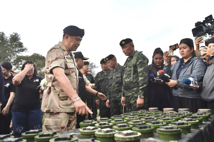 นายอนุทิน ชาญวีรกูล นายกรัฐมนตรีและรัฐมนตรีว่าการกระทรวงมหาดไทย สวมเครื่องแบบผู้บัญชาการกองอาสารักษาดินแดนประดับยศนายกองใหญ่ นำคณะรัฐมนตรี อาทิ พล.อ.ณัฐพล นาคพาณิชย์ รมว.กลาโหม นายสีหศักดิ์ พวงเกตุแก้ว รมว.การต่างประเทศ พล.ท.อดุลย์ บุญธรรมเจริญ รมช.กลาโหม รวมถึงน.ส.ไตรศุลี ไตรสรณกุล เลขาธิการนายกรัฐมนตรี นายอรรษิษฐ์ สัมพันธรัตน์ ปลัดกระทรวงมหาดไทย พล.อ.อุกฤษฎ์ บุญตานนท์ ผู้บัญชาการทหารสูงสุด นายนฤชา โฆษาศิวิไลซ์ หัวหน้าผู้ตรวจราชการกระทรวงมหาดไทย นายอนุพงศ์ สุขสมนิตย์ ผู้ว่าราชการจังหวัดศรีสะเกษ ตรวจเยี่ยมการปฏิบัติงานของกองพันทหารราบที่ 162 (ร.16 พัน.2) ที่ฐานปฏิบัติการห้วยตามาเรีย และกองพันทหารราบที่ 11 ฐานปฏิบัติการอินทุมาน (ภูมะเขือ) อำเภอกันทรลักษณ์ จังหวัดศรีสะเกษ พร้อมรับฟังบรรยายสรุปสถานการณ์ในพื้นที่ชายแดน การลงพื้นที่ของนายกรัฐมนตรีและคณะ ในวันนี้ นายกรัฐมนตรีได้ร่วมร้องเพลงชาติไทยกับกำลังทหารและผู้บริหารระดับสูงที่ร่วมลงพื้นที่อย่างกึกก้องฮึกเหิม และตรวจเยี่ยมให้กำลังใจพร้อมมอบถุงยังชีพของกรม ปภ. ให้แก่บรรดาทหารหาญผู้ทำหน้าที่รักษาอธิปไตยของชาติ และให้สัมภาษณ์สื่อมวลชน ใจความตอนหนึ่งว่า "ประเทศไทยเป็นของเรา ที่ที่เรายืนอยู่คือประเทศไทย ใครจะมาแอบอ้างอธิปไตยเหนือดินแดนของไทยไม่ได้...ตนได้เห็นกับตาตัวเองแล้วว่า คู่สัญญาของประเทศไทย ก็คือ ประเทศกัมพูชาได้มีการละเมิดสิ่งที่ตัวเองจะต้องทำอย่างไรบ้าง บนความชัดเจน "ทุ่นระเบิด 4 ทุ่นที่ วันนี้เหลือ 3 ทุ่น" เพราะว่าน้องทหารของเราเหยียบไป 1 ทุ่น เป็นทุ่นระเบิดใหม่ที่วางในเขตของเรา ดังนั้น วันนี้เราก็จะดำเนินการตามที่ รมว.กลาโหม ผู้บัญชาการทหารสูงสุด ผู้บัญชาการทหารบก แม่ทัพภาคที่ 2 และคนที่อยู่หน้างาน คือ ผู้บัญชาการกองกำลังสุรนารี" และได้รับทราบรายงานสถานการณ์ปัจจุบัน ซึ่งกำลังเจ้าหน้าที่ฝ่ายไทยได้พัฒนาและปรับปรุงพื้นที่ตามแนวชายแดนอย่างต่อเนื่อง ทั้งการสร้างฐาน การสร้างที่กำบัง การสร้างถนนเลียบแนวชายแดน และการวางลวดหนามตามแนวชายแดน พร้อมลาดตระเวนพิสูจน์ทราบพื้นที่เพิ่มเติม เพื่อป้องกันกำลังทหารประเทศเพื่อนบ้านเข้ามายึดพื้นที่ ซึ่งในการลาดตระเวนทำให้ได้พบว่าหลาย ๆ จุด จะมีทั้งทุ่นระเบิดเก่าและใหม่ปะปนกัน โดยเฉพาะตามฐานที่มั่นของทหารประเทศเพื่อนบ้านที่พบมีวัตถุระเบิดหนาแน่น ส่งผลทำให้เป็นอันตรายต่อการปฏิบัติงาน จึงต้องมีการตรวจสอบทุ่นระเบิดในพื้นที่อย่างละเอียดก่อนเข้าปฏิบัติงาน ซึ่งสำหรับทุ่นระเบิด
