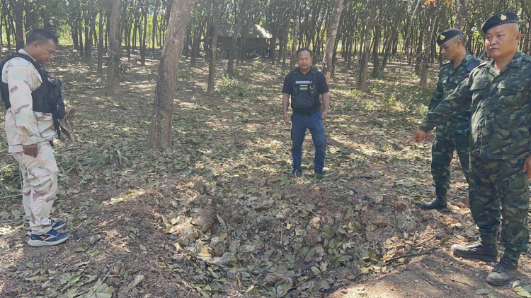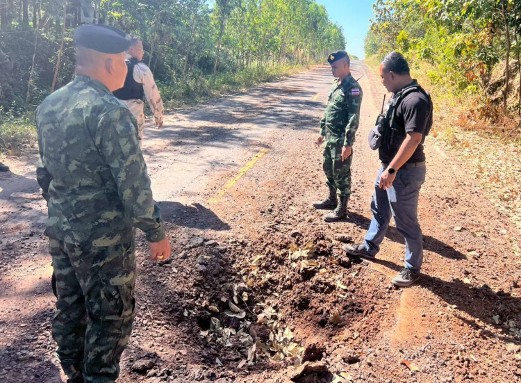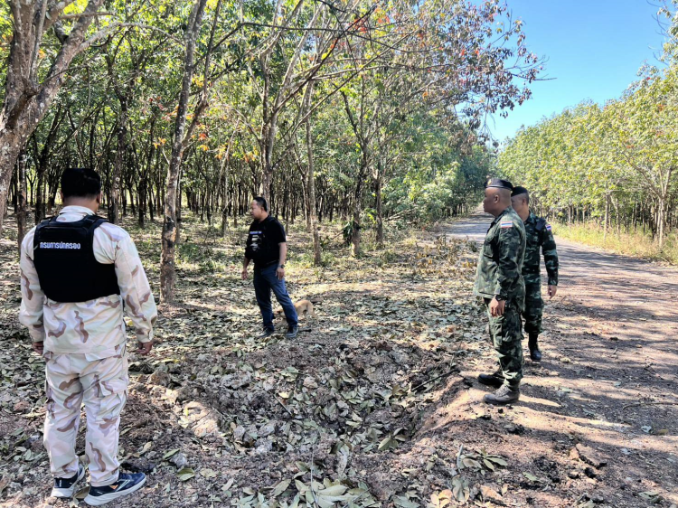 ร้อย.อส.อ.พนมดงรัก 16 บก.อส.จ.สุรินทร์ พร้อมด้วย ศบ.ทก.ปค. ส่วนหน้า จังหวัดสุรินทร์ ลงพื้นที่ตรวจเยี่ยมให้กำลังใจและตรวจสอบบริเวณกระสุนตกในพื้นที่