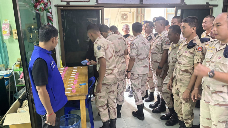 ร้อย.อส.อ.สะเดา 3 บก.อส.จ.สงขลา ดำเนินการตรวจปัสสาวะของสมาชิก อส. และมอบหมวกนิรภัยเพื่อขับเคลื่อนโครงการอำเภอปลอดภัยสวมหมวกนิรภัย 100 เปอร์เซ็นต์