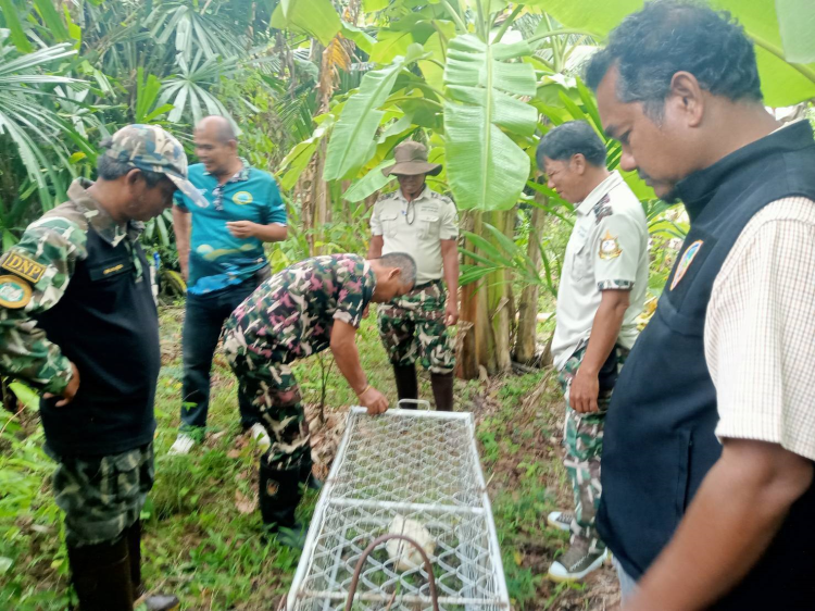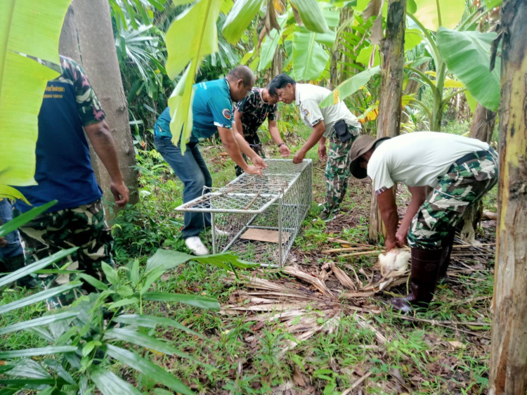 ร้อย.อส.อ.สทิงพระ 16 บก.อส.จ.สงขลา ร่วมกับเจ้าหน้าที่อุทยานนกน้ำคูขุด นำกรงดังจับสัตว์ไปติดตั้งเพื่อดักจับสัตว์ที่มากัดกินสัตว์เลี้ยงประชาชน