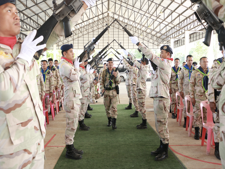 ผบ.ร้อย อส.อ.สุคิริน 13 บก.อส.จ.นราธิวาส เป็นประธานในพิธีปลดเป้ วางปืน คืนหน้าที่ ในโอกาสเกษียณอายุราชการ พร้อมกับประชุมสมาชิก อส. เพื่อติดตามผลการดำเนินงานในรอบห้วงเดือนที่ผ่านมา และมอบนโยบายสำคัญจากรัฐบาล กรมการปกครอง