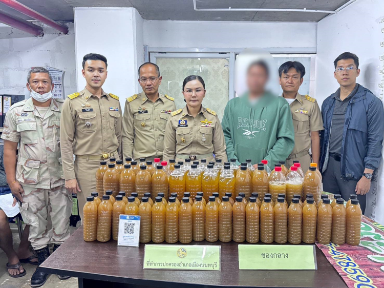 ในการนี้ จึงแจ้งข้อกล่าวหาว่าจำหน่ายน้ำต้มกระท่อมผสมอาหารอื่นเป็นการฝ่าฝืนประกาศกระทรวงสาธารณสุข (ฉบับที่ 430) พ.ศ. 2564 เรื่อง กำหนดอาหารที่ห้ามผลิต นำเข้า หรือจำหน่าย ที่ออกตาม มาตรา 6(8) มีโทษตามมาตรา 50 แห่งพระราชบัญญัติอาหาร พ.ศ. 2522 และผลิต ขาย หรือนำหรือสั่งเข้ามาในราชอาณาจักรซึ่งยาแผนปัจจุบันโดยไม่ได้รับอนุญาต มีโทษตามมาตรา 101 แห่งพระราชบัญญัติยา พ.ศ.2510 และฝ่าฝืนประกาศกระทรวงยุติธรรมและกระทรวงสาธารณสุข เรื่อง กำหนดสถานที่ วิธีการ หรือลักษณะต้องห้ามในการขายใบกระท่อม พ.ศ.2568 จากนั้นจึงได้ทำการตรวจยึดของกลางดังทั้งหมด มายังที่ว่าการอำเภอเมืองนนทบุรี (ชั่วคราว) เพื่อทำบันทึกการจับกุม และนำส่งพนักงานสอบสวน สภ.บางศรีเมือง เพื่อดำเนินคดีตามกฎหมายต่อไป