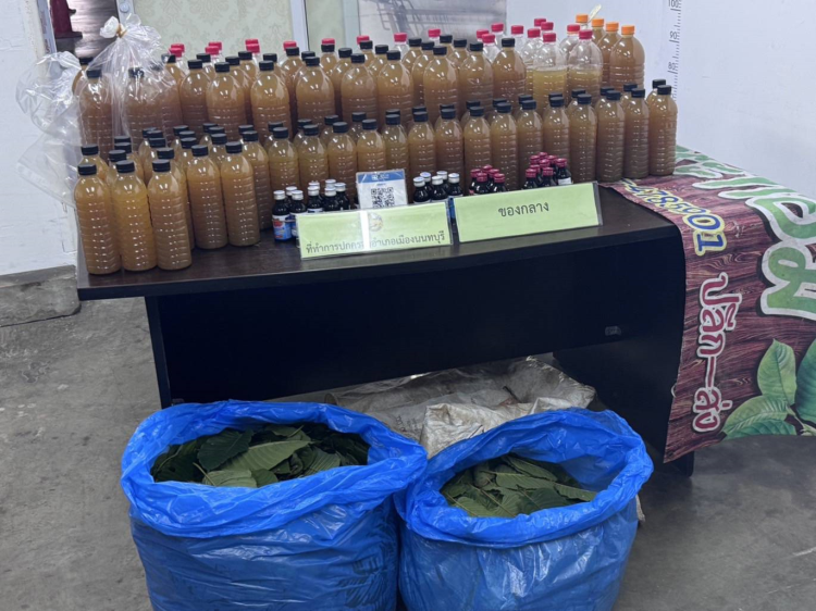 ร้อย.อส.อ.เมือง นบ.1 บก.อส.จ.นนทบุรี ปราบปรามการลักลอบจำหน่ายน้ำกระท่อมผสมยาแก้ไอ จับกุมผู้ต้องหา 1 ราย พร้อมของกลางน้ำกระท่อมและยาแก้ไอ