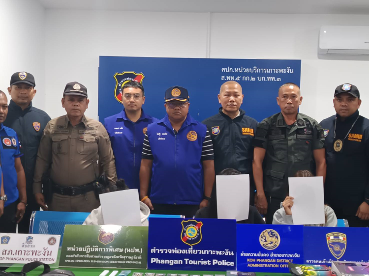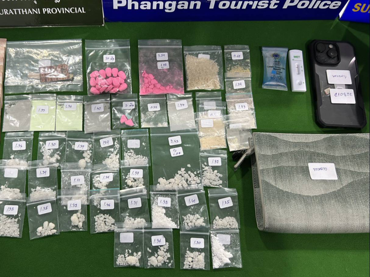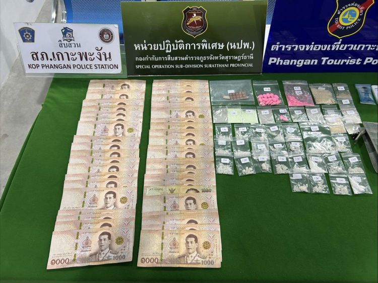 ร้อย.อส.อ.เกาะพะงัน 16 บก.อส.จ.สุราษฎร์ธานี บูรณาการร่วมหน่วยงานความมั่นคง ปราบปรามยาเสพติด ตามนโยบายของกรมการปกครอง จับชาวอิสราเอล 3 ราย พร้อมของกลางเคตามีน โคเคน แอซิด และยาอี