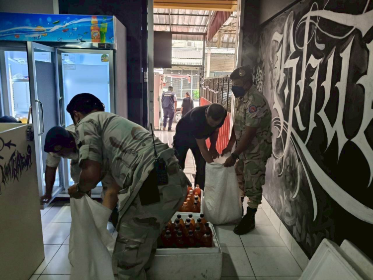 นายเชษฐา โมสิกรัตน์ ผบ.อส.จ.นนทบุรี นายอภิชัย อร่ามศรี รอง ผบ.อส.จ.นนทบุรี น.ส.ญาณิพัชญ์ ศรีโคตร ผบ.ร้อย.อส.อ.เมือง นบ.1 สั่งการให้ นายอิสระ ใจดี ปลัดอำเภอเมืองนนทบุรี นำกำลังสมาชิก อส. สังกัด ร้อย.อส.อ.เมือง นบ.1 ดำเนินการตรวจสอบข้อเท็จจริง จากการเฝ้าติดตาม พบว่ามีร้านที่มีลักษณะตรงตามเบาะแสเรื่องร้องเรียน และมีประชาชนเข้า - ออก ลักษณะเข้ามาซื้อน้ำขวดจากร้านดังกล่าวอยู่ตลอด จึงเข้าทำการตรวจสอบสถานที่ตามที่มีผู้ร้องเรียนแจ้ง ผลการปฏิบัติจับกุมผู้ต้องหา 1 ราย พร้อมของกลางและน้ำต้มกระท่อมบรรจุขวดขนาดประมาณ 1.5 ลิตร แช่อยู่ในตู้แช่ภายในร้าน จำนวน 128 ขวด โดยยอมรับว่าตนเองจำหน่ายน้ำกระท่อมจริง ซึ่งน้ำกระท่อมในร้านของตนจะเป็นลักษณะน้ำต้มใบกระท่อมผสมหัวเชื้อน้ำหวานหลายชนิด ถ้ามีลูกค้ามาติดต่อซื้อจะหยิบน้ำกระท่อมจากตู้แช่ จำหน่ายให้ลูกค้าในราคาขวดละ 100 บาท โดยนายโสภณฯ ไม่สามารถแสดงใบอนุญาตใดๆ เกี่ยวกับการจำหน่ายน้ำต้มใบกระท่อมให้กับเจ้าหน้าที่ตรวจสอบได้เลย เจ้าพนักงานชุดจับกุมจึงแจ้งข้อกล่าวหาให้ทราบว่าการจำหน่ายน้ำต้มกระท่อมผสมอาหารอื่น เป็นการฝ่าฝืนประกาศกระทรวงสาธารณสุข (ฉบับที่ 430) พ.ศ. 2564 เรื่อง กำหนดอาหารที่ห้ามผลิต นำเข้า หรือจำหน่าย ที่ออกตาม มาตรา 6(8) มีโทษตามมาตรา 50 แห่งพระราชบัญญัติอาหาร พ.ศ. 2522