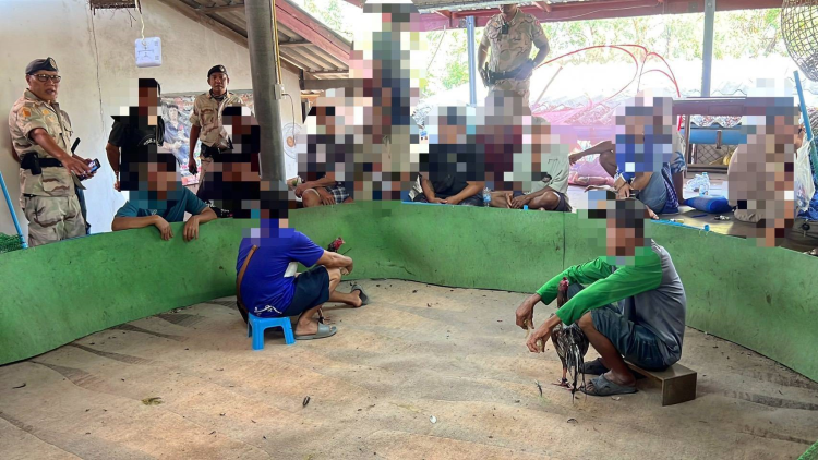 ร้อย.อส.อ.บางใหญ่ 6 บก.อส.จ.นนทบุรี ปฏิบัติการกวาดล้างบ่อนการพนัน และผู้ลักลอบเล่นการพนัน (ชนไก่) จับกุมนักพนัน 41 ราย