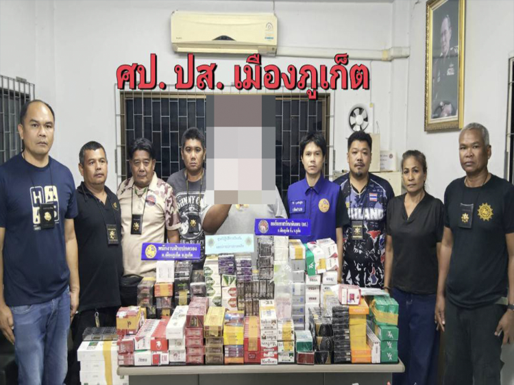 นายนิรัตน์ พงษ์สิทธิถาวร ผบ.อส.จ.ภูเก็ต ก.อ. อดุลย์ ชูทอง รอง ผบ.อส.จ.ภูเก็ต นายรุ่งเรือง ธิมาบุตร หน.ฝอ.บก.อส.จ.ภูเก็ต นายไพโรจน์ ศรีละมุล ผบ.ร้อย.อส.อ.เมือง ภก.1 และนายอัครา สุวัตถิกุล รอง ผบ.ร้อย.อส.อ.เมือง ภก.1 มอบหมายให้ นายธิติ บุณยัษเฐียร ปลัดอำเภอ นำกำลังสมาชิก อส. สังกัด ร้อย.อส.อ.เมือง ภก.1 บูรณาการร่วมกับเจ้าหน้าที่ตำรวจ ผลการปฏิบัติสามารถจับกุมผู้ต้องหาได้ 1 ราย พร้อมของกลางบุหรี่ผิดกฎหมาย รวม 1,880 ซอง เงินสด 21,855 บาท และอื่น ๆ รวม 33 รายการ ในการนี้เจ้าหน้าที่ได้แจ้งข้อกล่าวหาว่า มีไว้ในครอบครองซึ่งสินค้าที่เป็นสินค้าที่มิได้เสียภาษี หรือเสียภาษีไม่ครบถ้วน และขายหรือมีไว้เพื่อขายซึ่งสินค้าที่เป็นสินค้าที่มิได้เสียภาษีหรือเสียภาษีไม่ครบถ้วน และนำเข้าหรือเคลื่อนย้ายของที่ยังมิได้ผ่านพิธีการศุลกากรโดยไม่ได้รับอนุญาต และช่วยซ่อนเร้น จำหน่าย หรือรับไว้ซึ่งของที่เกี่ยวเนื่องกับความผิด จากนั้นจึงนำตัวผู้ต้องหาพร้อมของกลางทั้งหมดส่งพนักงานสอบสวน สภ.ฉลอง เพื่อดำเนินคดีตามกฎหมายต่อไป