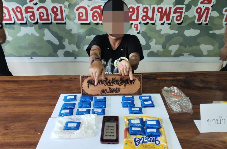 ร้อย.อส.จ.ชพ.1 บก.อส.จ.ชุมพร ปฏิบัติการป้องกันและปราบปรามยาเสพติด อย่างเด็ดขาด ภายใต้แนวทาง Quick Big Win จับกุมผู้ต้องหา (ชาวเมียนมา) 1 ราย พร้อมยาบ้า 3,800 เม็ด