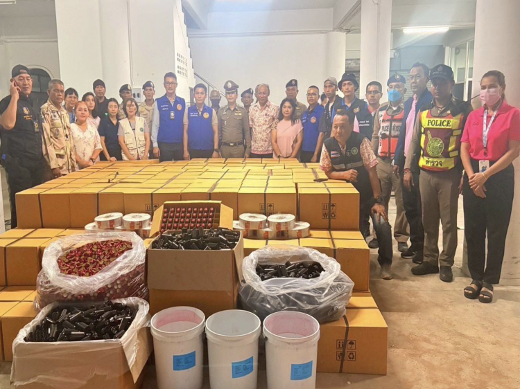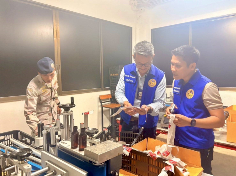 ร้อย.อส.จ.สฎ.1 และ ร้อย.อส.อ.พุนพิน 7 บก.อส.จ.สุราษฎร์ธานี ร่วมบูรณาการจับกุมผู้ผลิตยาแก้ไอปลอม พร้อมของกลาง ยาแก้ไอ DITISSIN (ดาทิสซิน) ชนิดน้ำเชื่อม ขนาด 60 ml จำนวน 19,844 ขวด และเครื่องมือผลิต
