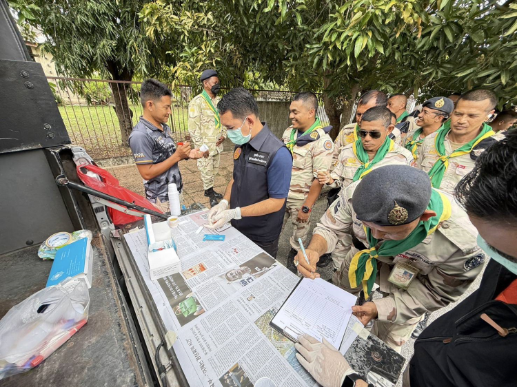 ร้อย.อส.อ.เมือง ยล.2 บก.อส.จ.ยะลา ตรวจหาสารเสพติดสมาชิก อส. ตามแผนการปฏิบัติการกวาดล้างยาเสพติด " No Drugs No Dealers" ผนึกกำลัง ชุมชนปลอดยาเสพติด จำนวน 46 นาย ไม่พบสารเสพติด