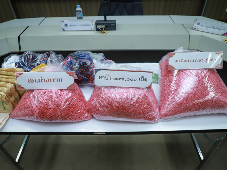 ผบ.อส.จ.สท. บก.อส.จ.สุโขทัย เป็นประธานการร่วมแถลงข่าวผลการปราบปรามยาเสพติด กรณีจับกุมผู้ต้องหา 3 ราย พร้อมของกลางยาบ้า 396,000 เม็ด