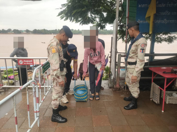 ร้อย.อส.อ.นาตาล 23 บก.อส.จ.อุบลราชธานี ตรวจค้นยาเสพติดและสิ่งผิดกฎหมายจากประชาชน สปป.ลาว ที่ข้ามมาแลกเปลี่ยนซื้อ-ขายสินค้า ที่ตลาดนัดจุดผ่านแดนถาวรบ้านปากแซง