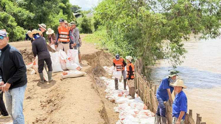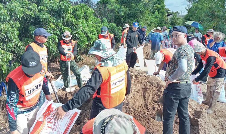 ร้อย อส.อ.เมือง ลพ.1 และ ร้อย บก.บร. บก.อส.จ.ลำพูน ร่วมบูรณาการซ่อมแซมตลิ่งเลียบน้ำทา เนื่องจากน้ำเซาะตลิ่ง บริเวณบ้านป่าตองหลวง