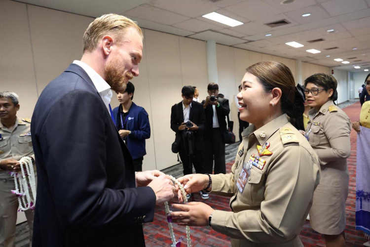 ณ ท่าอากาศยานนานาชาติหาดใหญ่ อำเภอคลองหอยโข่งจังหวัดสงขลา นายปฏิวัติ ทองเพชรจันทร์ นอ.คลองหอยโข่ง / ผบ.ร้อย.อส.อ.คลองหอยโข่ง 17 พร้อมด้วยนางอลิษา จิตรภูษา ปลัดอำเภอ หัวหน้ากลุ่มงานบริหารงานปกครอง / รอง ผบ.ร้อย.อส.อ.คลองหอยโข่ง 17 ปลัดอำเภอ เจ้าหน้า และสมาชิก อส.ร้อย.อส.อ.คลองหอยโข่ง 17 ร่วมต้อนรับ และอำนวยความสะดวก คณะเอกอัครราชทูตจาก 22 ประเทศ และสื่อมวลชนต่างชาติ เดินทางถึงจังหวัดสงขลา เพื่อมาศึกษาดูงานภายใต้ โครงการเสริมสร้างความเข้าใจและความร่วมมือกับต่างประเทศ ผ่านการศึกษาดูงานของคณะผู้แทนทางการทูต ระหว่างวันที่ 29 กันยายน – 1 ตุลาคม 2568 เพื่อเสริมสร้างความเข้าใจและภาพลักษณ์ที่ถูกต้องของจังหวัดสงขลา