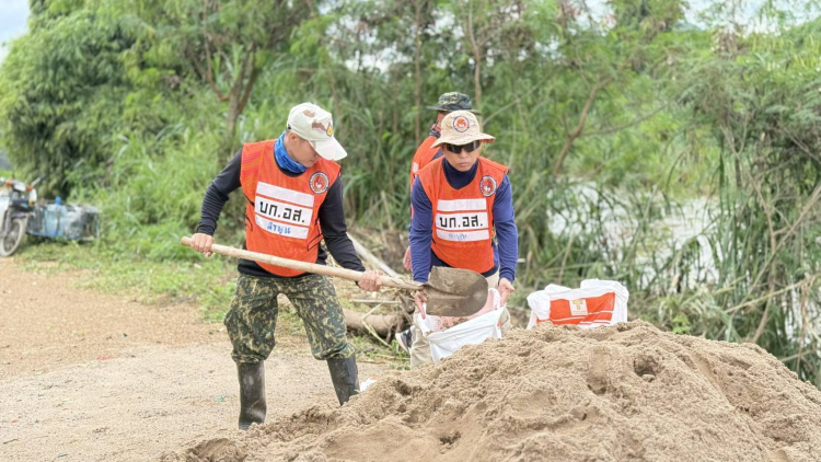 ร้อย.อส.อ.เมือง ลพ.1 และ ร้อย.บก.บร.บก.อส.ลำพูน ร่วมบูรณาการซ่อมแซมตลิ่งเลียบลำน้ำทา เนื่องจากน้ำเซาะตลิ่ง บริเวณบ้านป่าตองหลวง