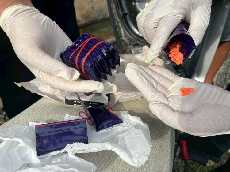 นางสาวอโรชา นันทมนตรี ผบ.อส.จ.นครปฐม นายยงยุทธ สวนทอง รอง ผบ.อส.จ.นครปฐม และนายพัฒนพงษ์ สร้อยอินทรากุล หน.ฝอ.บก.อส.จ.นครปฐม ชุดปฏิบัติการพิเศษฝ่ายปกครองจังหวัดนครปฐม ได้ลงพื้นที่สืบสวนหาข่าวพบว่ามีบุคคลมีพฤติกรรมจำหน่ายยาเสพติดให้กับวัยรุ่นในพื้นที่ ต.ลำพยา อ.เมืองนครปฐม อยู่เป็นประจำ ชุดปฏิบัติการพิเศษฝ่ายปกครองจังหวัดนครปฐม จึงได้ดำเนินการปิดล้อมจับกุมผู้ค้ายาเสพติด โดยสายลับได้ทำการล่อซื้อยาเสพติด (ยาบ้า) จากนางสาวบี (นามสมมุติ) ณ บ้านเช่าเลขที่ xx/xx หมู่ที่ 5 ต.ลำพยา จ.นครปฐม เจ้าหน้าที่ชุดจับกุมจึงได้แสดงตัว ตรวจค้นเป้าหมาย ขณะเข้าจับกุม พบนางสาวบี และนายเอ (นามสมมุติ) อยู่ภายในบ้านเช่าหลังดังกล่าว พบยาบ้าอยู่ภายในบ้าน จำนวน 353 เม็ด ยาไอซ์ 0.2 กรัม จากนั้นจึงตรวจค้นรถมอไซค์ของนายเอ พบยาบ้าอีกจำนวน 1,600 เม็ด ยาไอซ์ 1.2 กรัม พร้อมอุปกรณ์เสพยาเสพติด รายละเอียดการตรวจยึดของกลางดังนี้