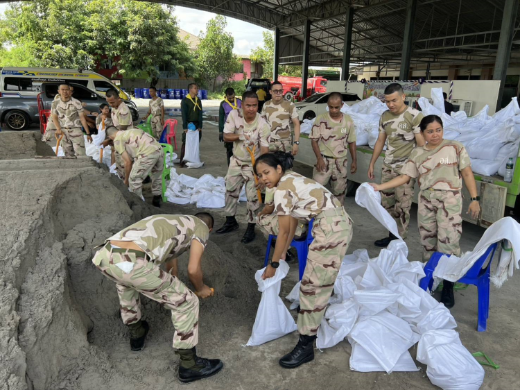 2. เวลา 09.30 น. สนับสนุนองค์การบริหารส่วนตำบลบ้านป้อม ในการบรรจุกระสอบทรายและเคลื่อนย้ายกระสอบทราย ไปยังพื้นที่ที่ได้รับผลกระทบจากน้ำล้นตลิ่ง ณ องค์การบริหารส่วนตำบลบ้านป้อม และวัดไชยวัฒนาราม ตำบลบ้านป้อม อำเภอพระนครศรีอยุธยา