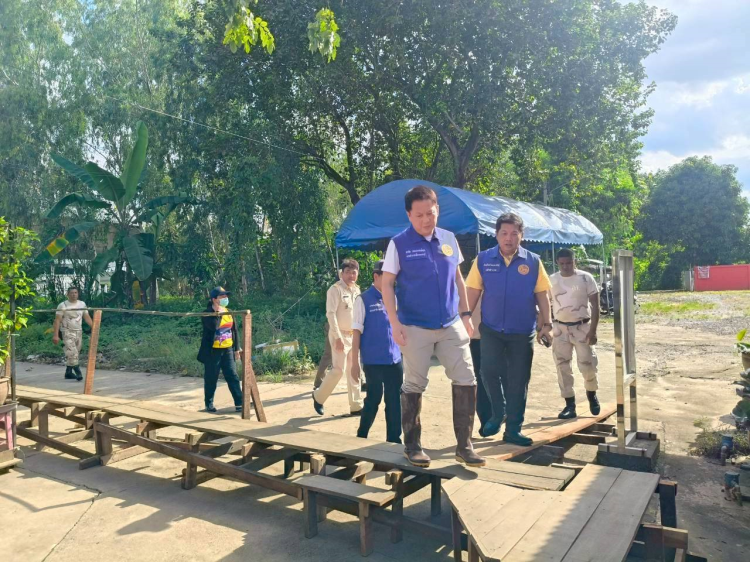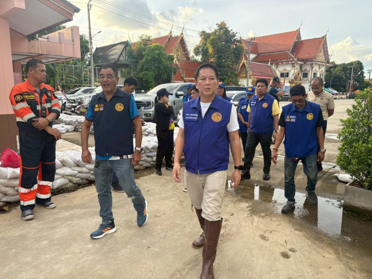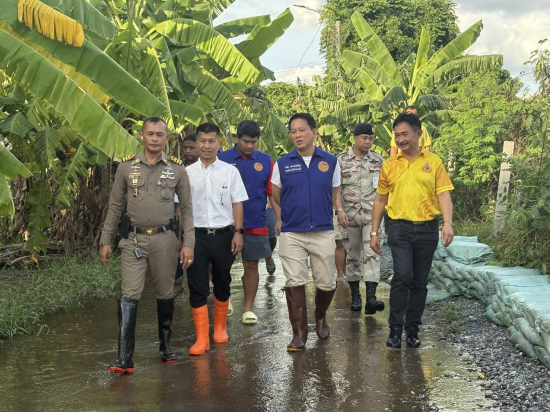 ผบ.ร้อย.อส.อ.เมือง นบ.1 บก.อส.นนทบุรี ร่วมบูรณาการลงพื้นที่เพื่อติดตามสถานการณ์น้ำและดูแนวกั้นกระสอบทราย 5 แห่ง