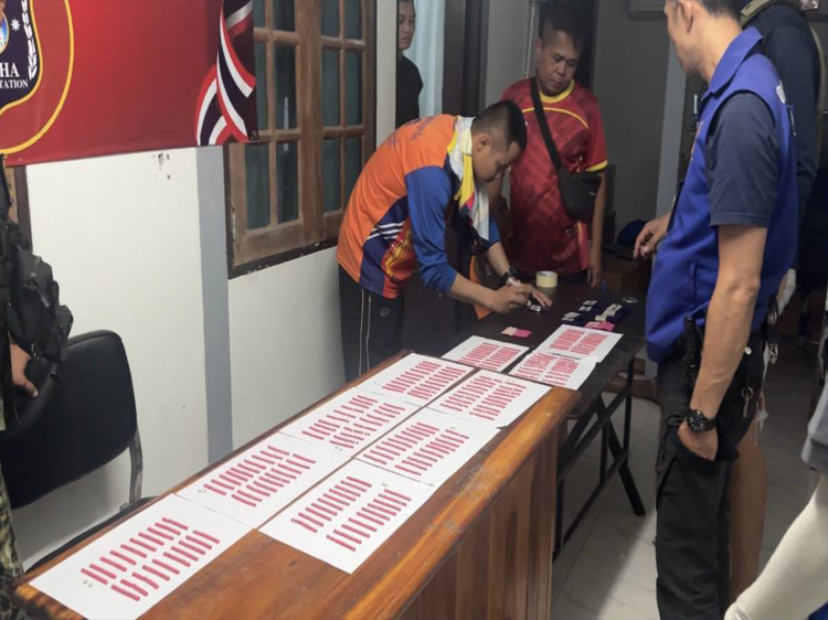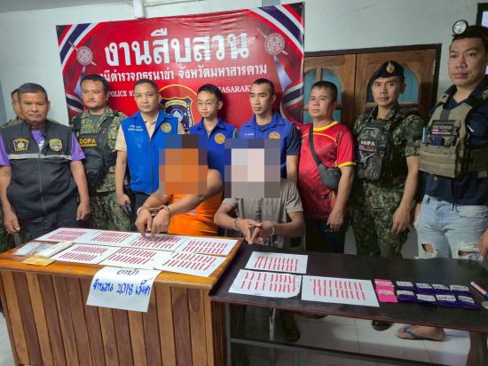 ร้อย.อส.อ.วาปีปทุม 3 และร้อย.บก.บร. บก.อส.จ.มหาสารคาม จับกุมผู้ต้องหายาเสพติด 2 ราย พร้อมของกลางยาบ้า 2,018 เม็ด