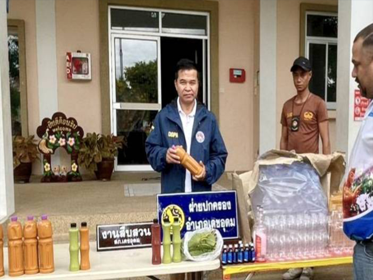 ร้อย.อส.อ.เดชอุดม 5 บก.อส.จ.อุบลราชธานี ดำเนินการลงพื้นที่จับร้านขายน้ำกระท่อม ติดรั้วสถานศึกษา จับกุมผู้ต้องหา 1 ราย พร้อมน้ำกระท่อมบรรจุขวดและยาแก้ไอ