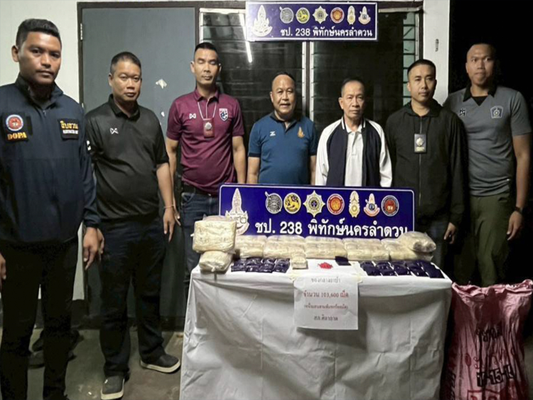 ร้อย.อส.จ.ศก.2 บก.อส.จ.ศรีสะเกษ เปิดปฏิบัติการกวาดล้างยาเสพติด สร้างชุมชนปลอดภัยห่างไกลยาเสพติด จับผู้ต้องหา 4 ราย พร้อมของกลางยาบ้า 103,600 เม็ด