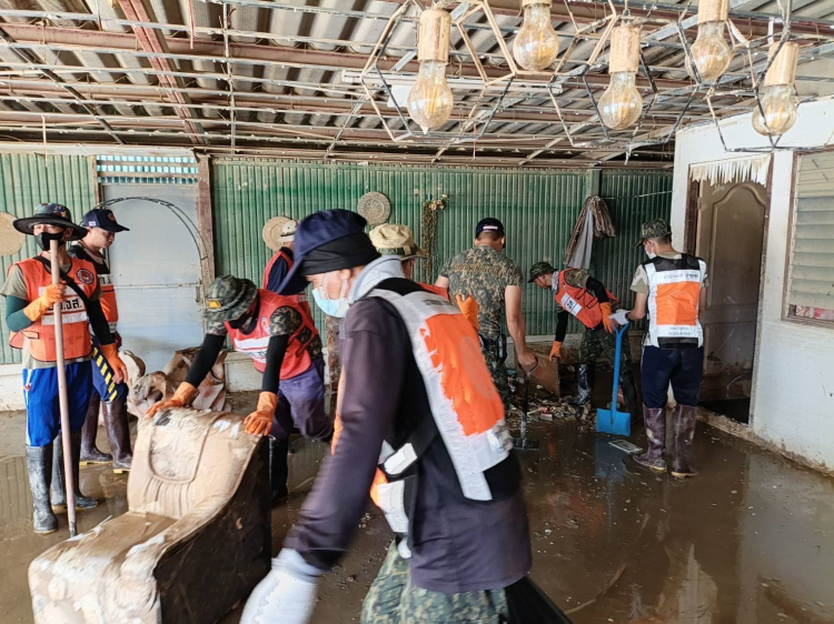 ก.อ. สันติ รังษิรุจิ ผบ.อส.จ.อุตรดิตถ์ ก.อ. พชรเสฏฐ์ บุญศิริสาริศา ก.อ. ภูริวัจน์ โชตินพรัตน์ รอง ผบ.อส.จ.อุตรดิตถ์ และ ก.ท. สมศักดิ์ สุขประเสริฐ ผช.ผบ.อส.จ.อุตรดิตถ์ ได้สั่งการให้ สมาชิก อส. บก.อส.จ.อุตรดิตถ์ จำนวน 36 นาย โดยมี นายปิยะ มหาวงศ์ เจ้าหน้าที่ปกครองชำนาญงาน เป็นหัวหน้าชุด ลงพื้นที่ช่วยฟื้นฟูหลังน้ำท่วมในพื้นที่ อ.หาดใหญ่ จ.สงขลา ตั้งแต่วันที่ 27 พ.ย.2568 เป็นต้นไป เพื่อเร่งบรรเทาทุกข์ประชาชนให้เข้าสู่สภาวะปกติโดยเร็วที่สุด ผลการดำเนินการช่วยเหลือประชาชนขนย้ายสิ่งของ วัสดุอุปกรณ์ เขต 3 จำนวน 32 หลังคาเรือน ศูนย์พักพิงคนชรา 7 ห้อง และทำความสะอาดบริเวณถนนในพื้นที่เขต 3
