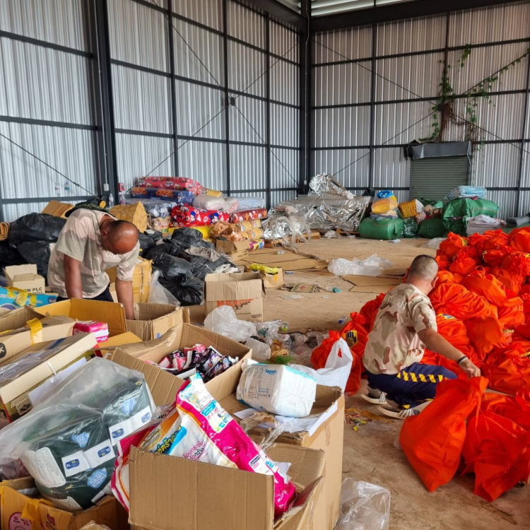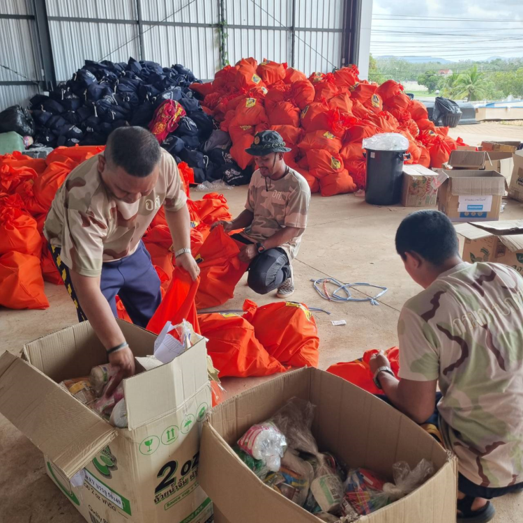ณ ศูนย์ป้องกันและบรรเทาสาธารณภัย เขต 12 สงขลา นายปรีดา ฟุ้งตระกูลชัย ผอ.สปต. บก.อส. มอบหมายให้ สมาชิก อส. สังกัด ร้อย.ปพ.2 (ร้อย.รถไฟ) จัดกำลังสมาชิก อส. ดำเนินการขนสิ่งของอุปโภค บริโภค พร้อมทั้งจัดถุงยังชีพ