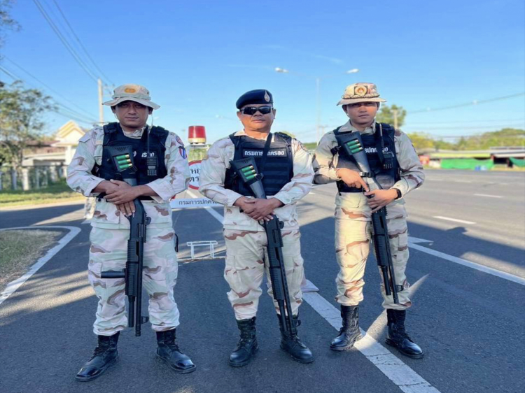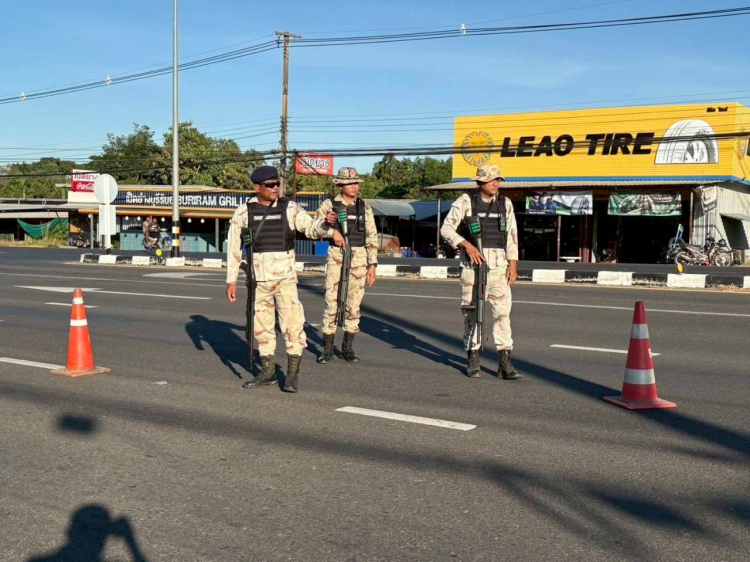 เจ้าหน้าที่ และสมาชิก อส. บก.อส.จ.บุรีรัมย์ พร้อมด้วย กำนัน ผู้ใหญ่บ้าน และชุดรักษาความปลอดภัยหมู่บ้าน (ชรบ.) ออกตรวจพื้นที่อย่างต่อเนื่อง ดูแลรักษาความสงบ ความปลอดภัยในชีวิตและทรัพย์สินของพี่น้องประชาชน พร้อมดูแลประชาชนในทุกสถานการณ์ ในช่วงเหตุการณ์ปะทะกันบริเวณชายแดนไทย - กัมพูชา