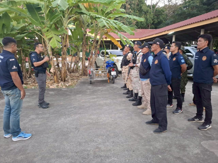 นายอุกฤษฏ์ หงษ์ไธสง ผบ.ร้อย.อส.อ.เมือง บร.3 และนายประสงค์ จันทร์กระจ่าง รอง ผบ.ร้อย.อส.อ.เมือง บร.3 ได้สั่งการให้ นายทนนท์ เม็นไธสง ป.หน.ฝ.คม.อ.เมืองบุรีรัมย์ นางปิยาภรณ์ มีภักดี ป.ฝ.คม.อ.เมืองบุรีรัมย์ นำกำลังสมาชิก อส. สังกัด ร้อย.อส.อ.เมือง บร.3 พร้อมด้วย กำนัน ผู้ใหญ่บ้าน ผู้ช่วยผู้ใหญ่บ้าน และ ชรบ. ปฎิบัติหน้าที่ตรวจตรารักษาความสงบเรียบร้อย ตั้งจุดตรวจ จุดสกัด ในพื้นที่ อ.เมืองบุรีรัมย์ จ.บุรีรัมย์ เพื่อป้องปรามอาชญากรรม เฝ้าระวัง บุคคลหรือกลุ่มบุคคลที่เป็นสแกมเมอร์ ตรวจตรา เฝ้าระวัง บุคคลสัญชาติกัมพูชา หรือบุคคลที่มีพฤติการณ์เป็นสายลับ การบินอากาศยานซึ่งไม่มีนักบิน (Drone) และตรวจเยี่ยมสถานที่พักพิงชั่วคราว