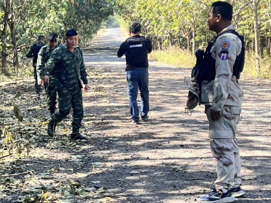 ร้อย.อส.อ.พนมดงรัก 16 บก.อส.จ.สุรินทร์ พร้อมด้วย ศบ.ทก.ปค. ส่วนหน้า จังหวัดสุรินทร์ ลงพื้นที่ตรวจเยี่ยมให้กำลังใจและตรวจสอบบริเวณกระสุนตกในพื้นที่