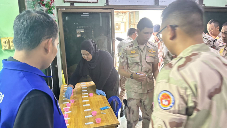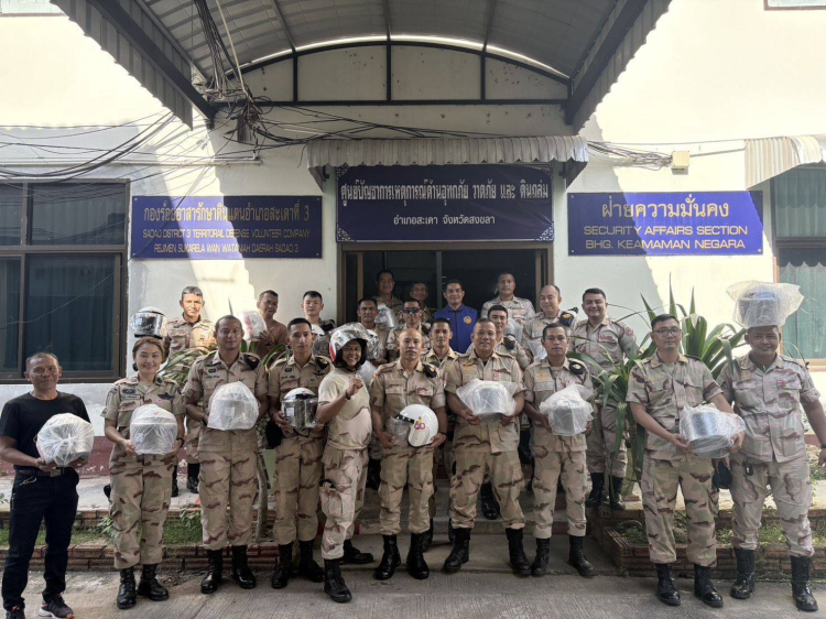 ร้อย.อส.อ.สะเดา 3 บก.อส.จ.สงขลา ดำเนินการตรวจปัสสาวะของสมาชิก อส. และมอบหมวกนิรภัยเพื่อขับเคลื่อนโครงการอำเภอปลอดภัยสวมหมวกนิรภัย 100 เปอร์เซ็นต์