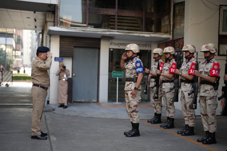 ณ กองบัญชาการกองอาสารักษาดินแดน ถนนพหลโยธิน เขตพญาไท กรุงเทพฯ ก.อ. นฤชา โฆษาศิวิไลซ์ หน.ฝอ.บก.อส. ตรวจเยี่ยมสำนักอำนวยการกองอาสารักษาดินแดนและมอบแนวทางการปฏิบัติงาน กรมการปกครอง ประจำปีงบประมาณ พ.ศ. 2569 “ อำเภอพึ่งได้ ” DOPA 2026: Better Together โดยมี ว่าที่ ก.อ. เรืองลักษณ์ เรืองยังมี ผช.หน.ฝอ.บก.อส. นำกำลังสมาชิกกองอาสารักษาดินแดนตั้งแถวเข้ารับการตรวจเยี่ยม พร้อมมีผู้บริหารกรมการปกครอง เข้าร่วม หน.ฝอ.บก.อส. กำชับให้ฝ่ายปกครองและกำลังสมาชิก อส. ในพื้นที่ในการช่วยกันขับเคลื่อน “ อำเภอพึ่งได้ ” ให้สามารถตอบสนองและดูแลพี่น้องประชาชนได้ในทุกภารกิจ และทุกพื้นที่ของประเทศ โดยมอบแนวทางปฏิบัติงานที่สำคัญ ได้แก่เรื่องการขอให้เสริมสร้างบทบาทของกองอาสารักษาดินแดน เรื่องการดูแลสิทธิ สวัสดิการของกำลังพลสมาชิก อส.เพื่อสร้างขวัญและกำลังใจ แลขอให้สำนักอำนวยการกองอาสารักษาดินแดนเป็นพี่เลี้ยง ให้กับส่วนภูมิภาค คอยช่วยแก้ไขปัญหาและให้คำแนะนำในการทำงานให้เป็นไปด้วยความเรียบร้อย ทั้งนี้ อธิบดีเน้นย้ำว่า “ อส. ต้องเป็นที่พึ่งให้ได้ ” เมื่อประชาชนเกิดความเดือดร้อน เราต้องเป็นที่พึ่งให้กับพี่น้องประชาชนให้ได้ โดยไม่หวังสิ่งตอบแทน ซึ่งถือเป็นเกียรติเป็นศักดิ์ศรี และเป็นคุณงามความดีของกองอาสารักษาดินแดนที่มีต่อประชาชน