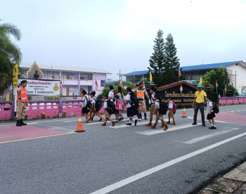 วันที่ 11 พ.ย. 2567 ร้อย.อส.อ.นาหม่อน 14 บก.อส.จ.สงขลา จัดชุด อส.จิตอาสา พาน้องข้ามถนน